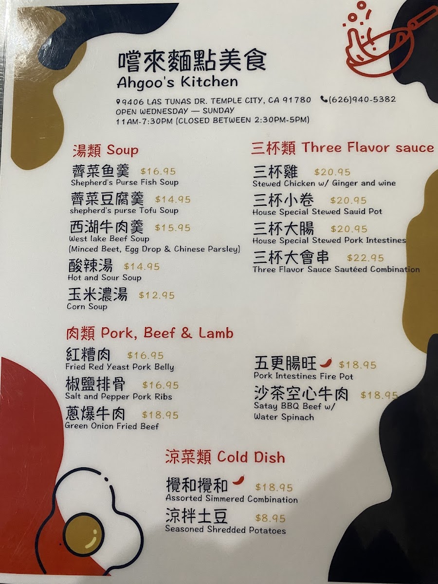 Ahgoo's Kitchen offers a menu that reflects the comforting and authentic flavors of Taiwanese home cooking, bringing a sense of warmth and familiarity to every dish. The menu features a range of hearty plates and casual bites that suit both leisurely lunches and relaxed dinners with family or friends.